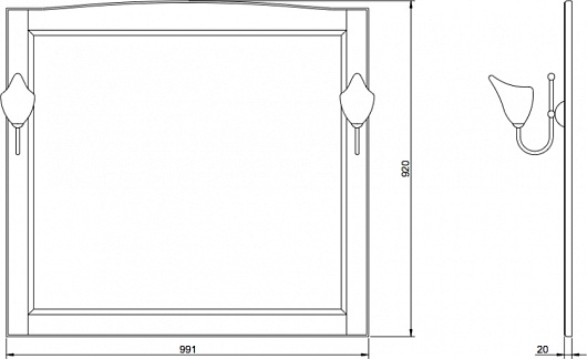 - зеркало Эллина 105: зеркало, светильники "Персей-1" хром - 2 шт., плафон "Калла" - 2 шт.