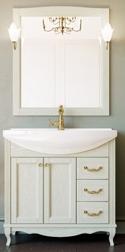 Тумба под раковину Эллина 85 слоновая кость, фурнитура золото