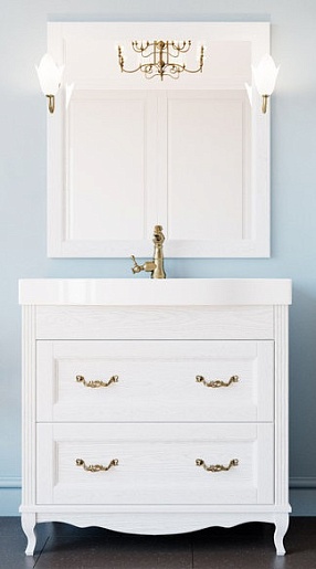 Тумба под раковину Лиора 90 белая, фурнитура бронза