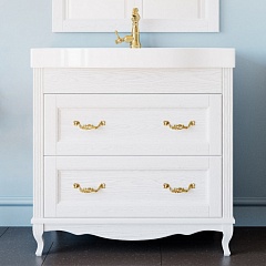 Тумба под раковину Лиора 90 белая, фурнитура золото