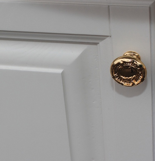 Описание: два распашных фасада, вкладные полки, два выдвижных фасада, корзина, ручки золото.