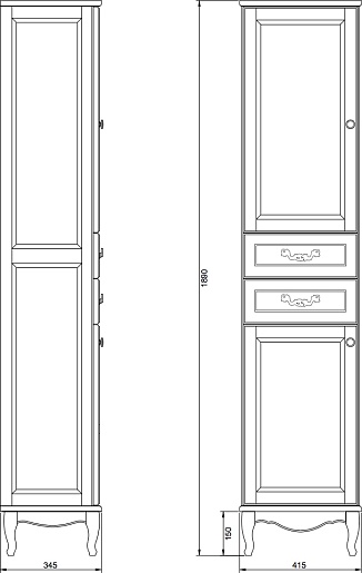 ValenHouse Пенал Эллина 40 слоновая кость L, фурнитура хром