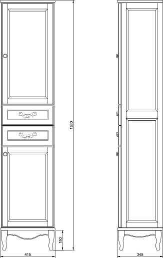 Описание: два распашных фасада, вкладные полки, два выдвижных фасада, ручки золото.