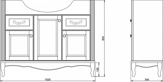 Тумба под раковину Эллина 105 кальяри,фурнитура хром