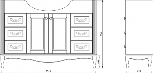 - тумба под раковину Эллина 120, массив ясеня, 2 распашных фасада, 6 ящиков, ручки хром