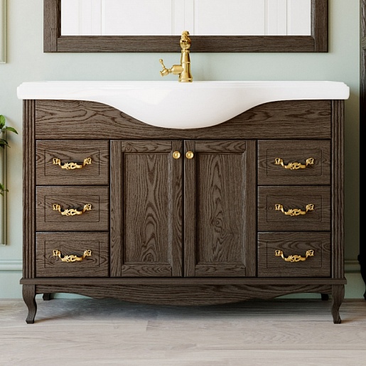 - тумба под раковину Эллина 120, массив ясеня, 2 распашных фасада, 6 ящиков, ручки золото
