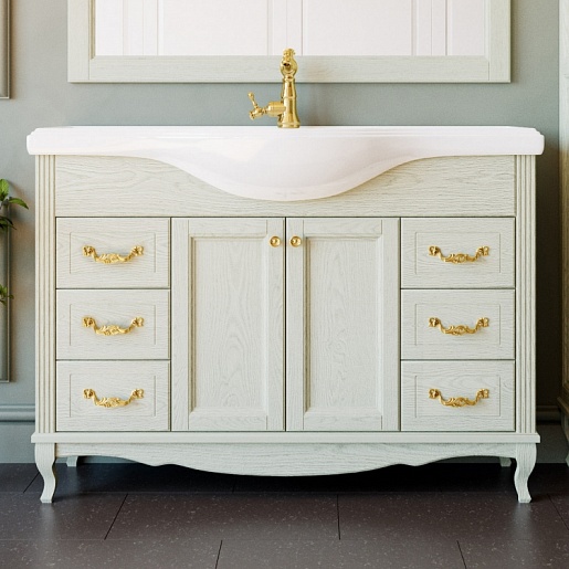 - тумба под раковину Эллина 120, массив ясеня, 2 распашных фасада, 6 ящиков, ручки золото