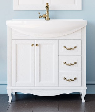 - тумба под раковину Эллина 85, массив ясеня, 2 распашных фасада, 3 ящика, ручки бронза