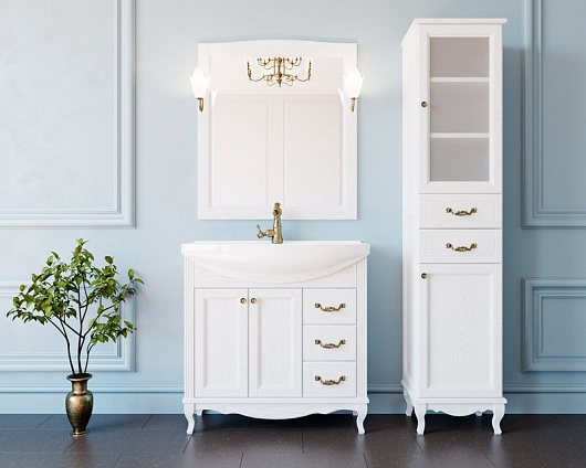 Тумба под раковину Эллина 85 белая, фурнитура бронза