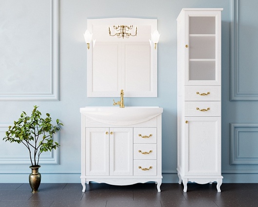 Тумба под раковину Эллина 85 белая, фурнитура золото