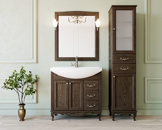 - тумба под раковину Эллина 85, массив ясеня, 2 распашных фасада, 3 ящика, ручки хром