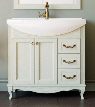 - тумба под раковину Эллина 85, массив ясеня, 2 распашных фасада, 3 ящика, ручки бронза