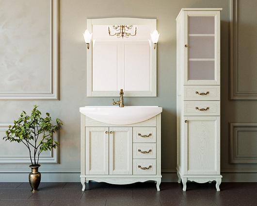 Тумба под раковину Эллина 85 слоновая кость, фурнитура бронза
