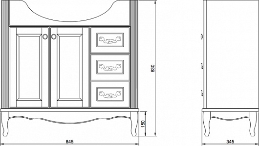 Тумба под раковину Эллина 85 слоновая кость, фурнитура хром