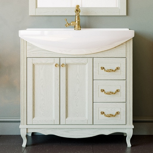 - тумба под раковину Эллина 85, массив ясеня, 2 распашных фасада, 3 ящика, ручки золото