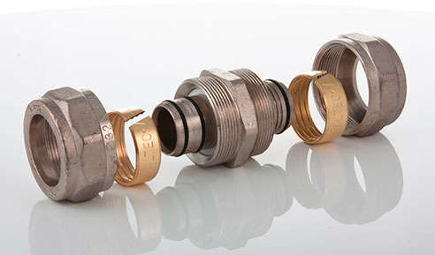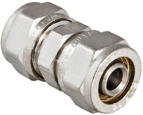 - обжимной никелированый фитинг для соединения металлопластиковых трубопроводов и труб из других материалов