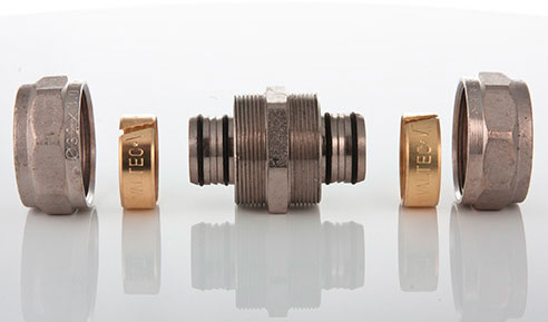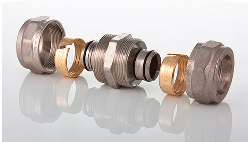 - обжимной никелированый фитинг для соединения металлопластиковых трубопроводов и труб из других материалов