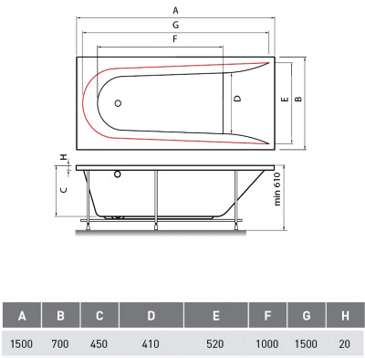 Акриловая ванна Boomerang 150x70 - арт. Гл000023945.