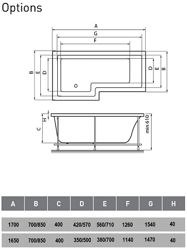 Акриловая ванна Options 170x70/85 L - арт. Гл000011192