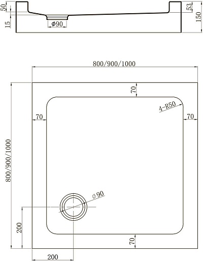 Душевой поддон Veconi Tezeo acrylic TZ-52B 100x100 - TZ52B-100-C5.