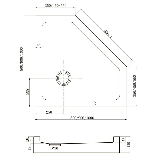 В комплекте: поддон, сифон, ножки.