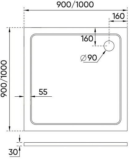 - Высота поддона: 3 см.