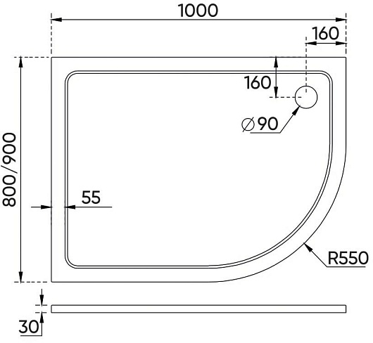 - Высота поддона: 3 см.