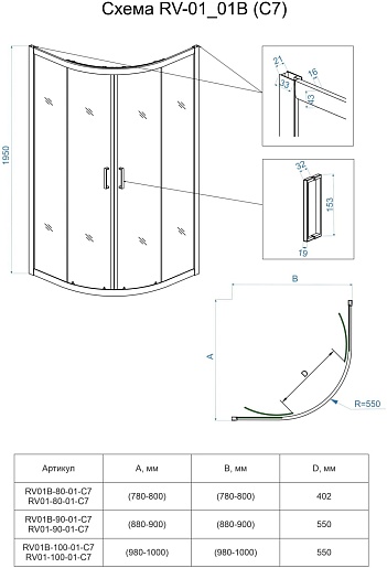 Душевой уголок Veconi Rovigo RV-01 100x100 - арт. RV01-100-01-C7.