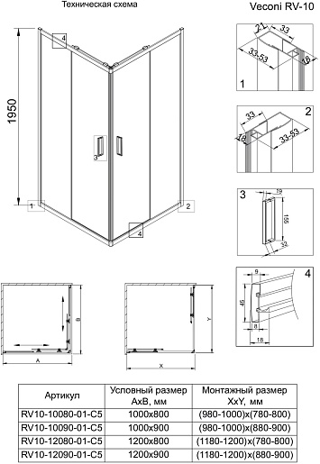Душевой уголок Veconi Rovigo RV-10 100x90 - арт. RV10-10090-01-C5.