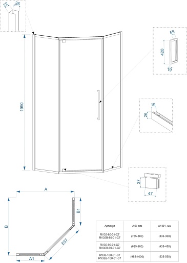 Душевой уголок Veconi Rovigo RV-35B 80x80 - арт. RV35B-80-01-C7.