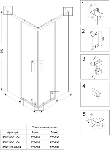 Душевой уголок Veconi Rovigo RV-47 100x100 - арт. RV47-100-01-C4.