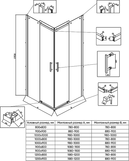 - Регулируемый размер установки: 1080-1100 х 880-900 мм.