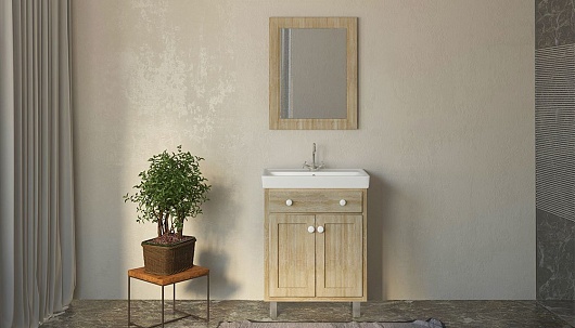 - tnALB.60-25 Тумба с раковиной Alba 60: фасад из МДФ с облицовкой ПВХ-пленкой, два распашных фасада, ящик, раковина "Мини 60" из керамики
