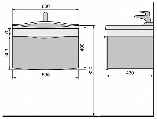 - tpIVA.60-21.21 Тумба с раковиной "IVA 60": фасад МДФ, облицованный ПВХ-пленкой, вместительный выдвижной ящик