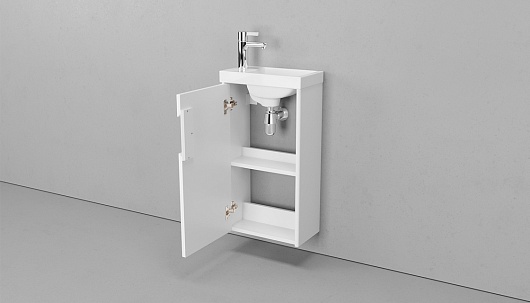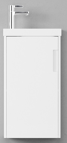 - tpKLA.40.1D-616.216 Тумба Klaufs 40 подвесная : распашной фасад, МДФ, полимерное покрытие ПВХ, HPL поверхность, европейская фурнитура. Тумба оснащена раковиной Como 40 из керамики.