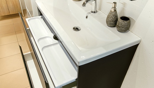 - tnKLA.100.2Y-617.217 Тумба Klaufs 100 напольная : выдвижные фасады, МДФ, полимерное покрытие ПВХ, HPL поверхность, европейская фурнитура. Тумба оснащена раковиной Como 100 из керамики.
