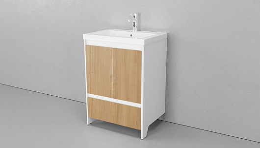 Тумба под раковину напольная Klaufs 60 белая/дерево, 1 ящик