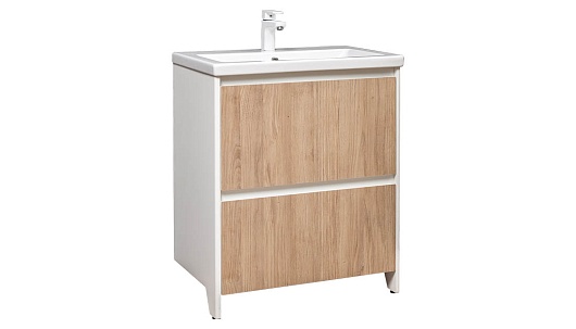 Velvex Мебель для ванной напольная Klaufs 70 белая/дерево, 2 ящика