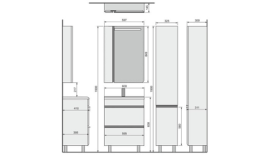 Velvex Пенал для ванной Crystal CUB 155, белый/ темный лен