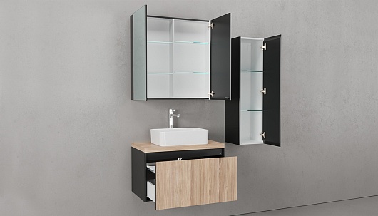 Velvex Пенал для ванной Klaufs 110 черный/дерево