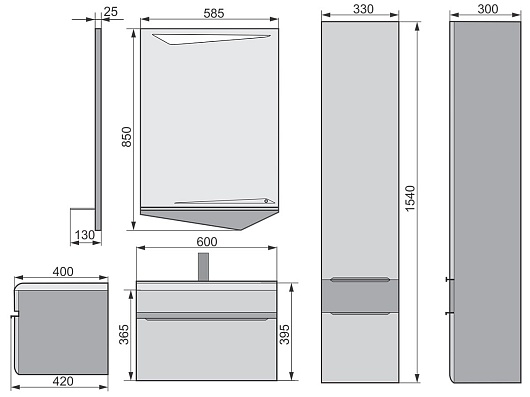 Тумба под раковину Crystal Cub 60 подвесная, белая/темный лен