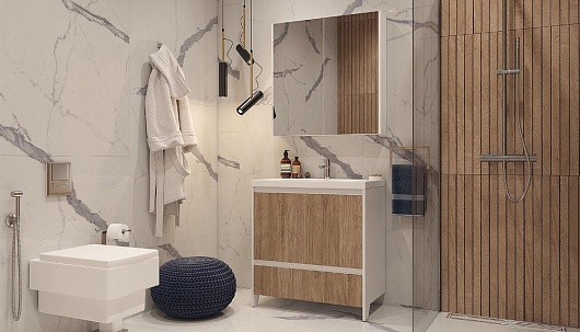 Тумба под раковину напольная Klaufs 90 белая/дерево