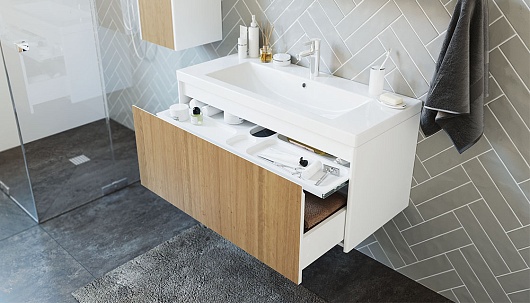 Тумба под раковину подвесная Klaufs 100 белая/дерево