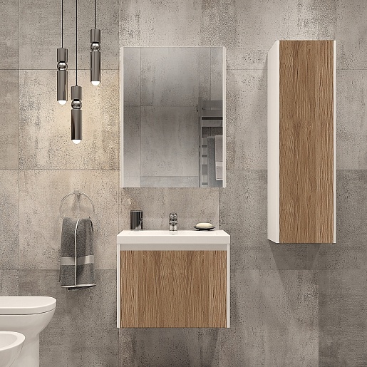 Velvex Тумба с раковиной подвесная Klaufs 60 белая/дерево, 1 ящик