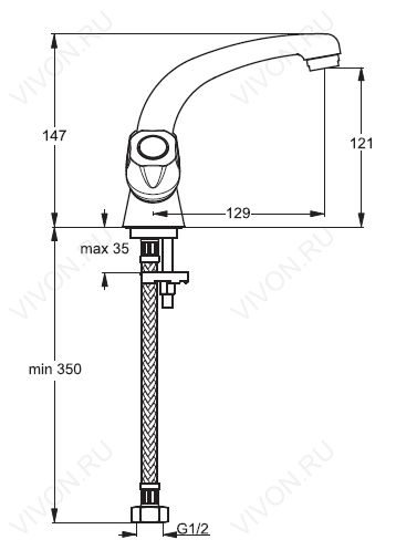 - гибкая подводка G3/8", переходник на G1/2" в комплекте