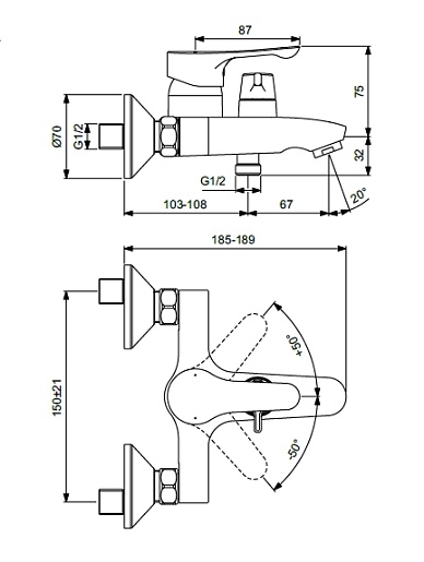 Vidima Смеситель Wave BA416AA для ванны/душа