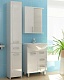 Комплектация: зеркальное полотно с нижней полкой и козырьком. Слева расположен глянцевый распашной шкаф с механизмом плавного закрывания, вкладными полками и хромированной ручкой.