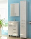 - тумба под раковину: распашная дверца и 3 выдвижных ящика с механизмом плавного закрывания, вкладная полка, 4 металлических ручки (хром), регулируемые ножки