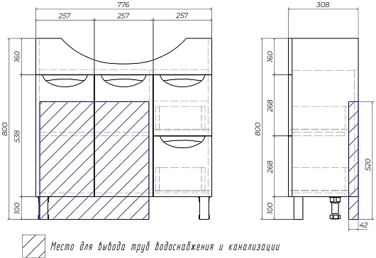Комплектация: тумба под раковину, раковина, сифон, ножки (4 шт.).