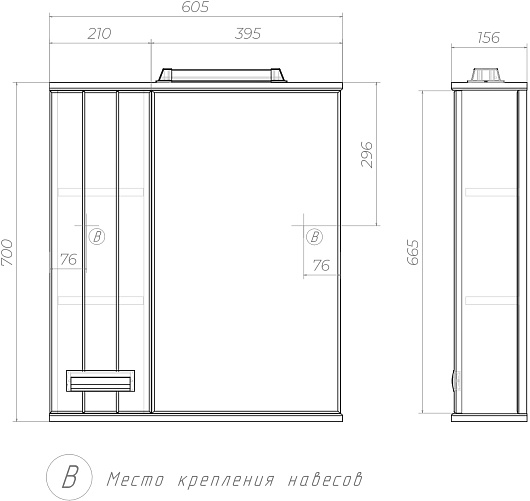 - Размеры (ШхГхВ): 605х156х700 мм.